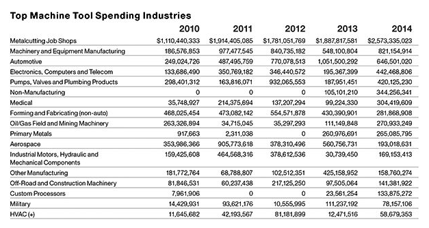 We recommend reading the End Market Spending Trends from the link above. It points to the rise of demand from Job Shops as much of the metalworking work is being shifted from industries such as Aerospace into these job shops. It also points to Electronics being positively impacted by reshoring and high growth in storage and transportation for natural gas. While oil/gas spending will be much lower since 2014, we think some of the other positive trends remain.