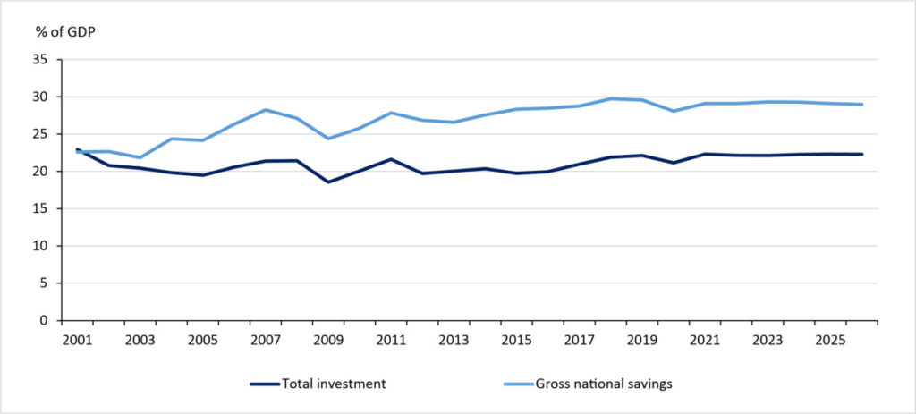 The new government enters office against this backdrop. Its welcome plans to use budgetary manoeuvres to work around the ‘debt brake’ and boost climate and infrastructure spending hold forth the prospect of increased investment and reduced public saving. That would help boost domestic demand and lessen external reliance.