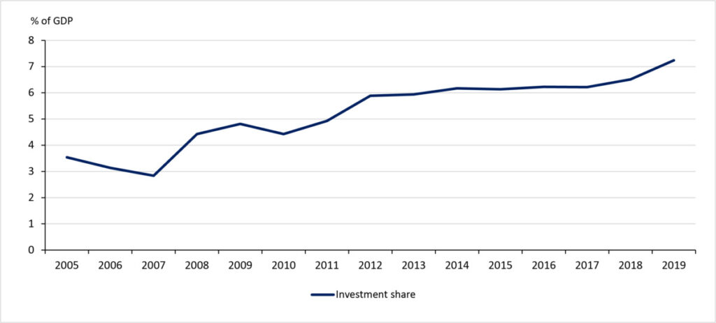 Further, investment remains high and more is needed to generate a percentage point of growth (Figure 2).