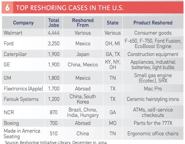 Further, California was not the destination for any of the top 10 reshoring examples noted below.