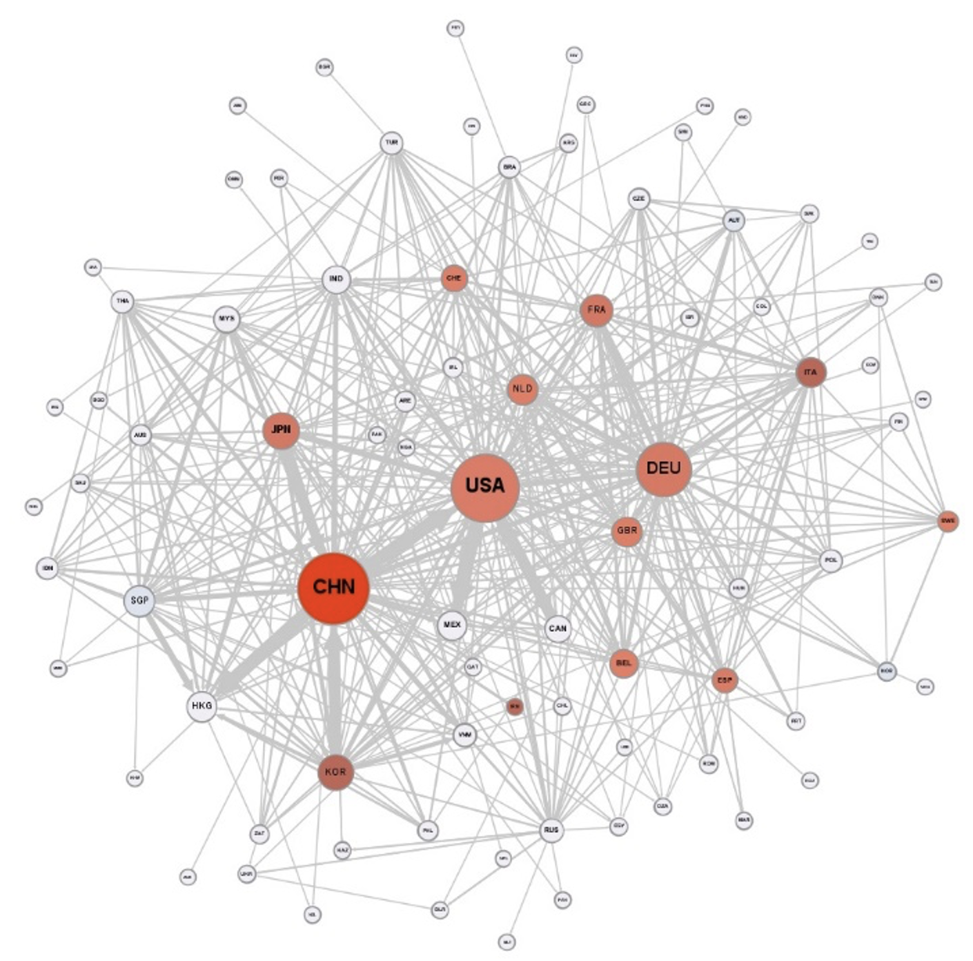 Figure 2 Global network of intermediate trade, 2018