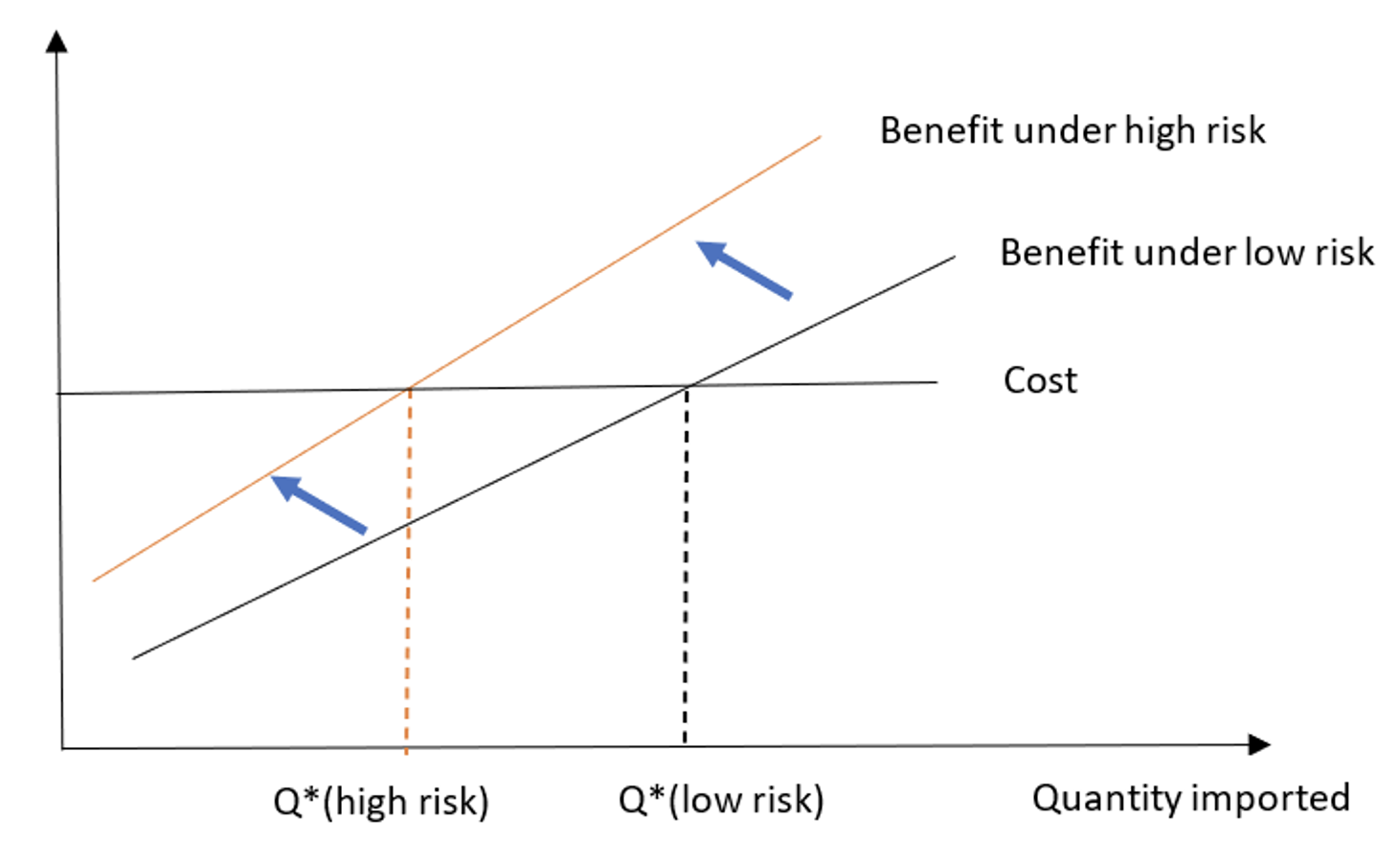 Figure 2 Benefits and costs of switching import sources induced by changes in geopolitical risks