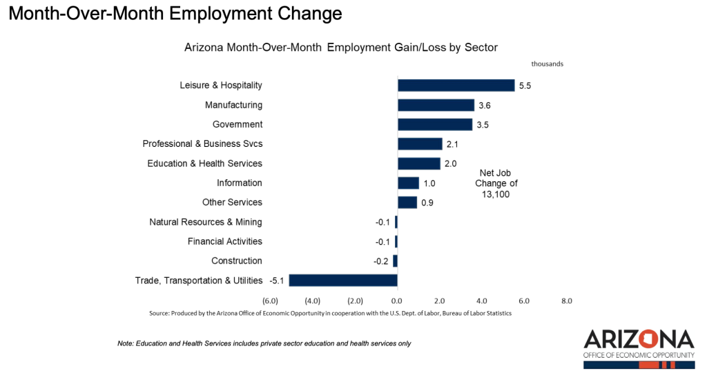 In Arizona, for example, nearly 4,000 manufacturing jobs were added to the state’s job market in April, according to the state’s monthly employment report.