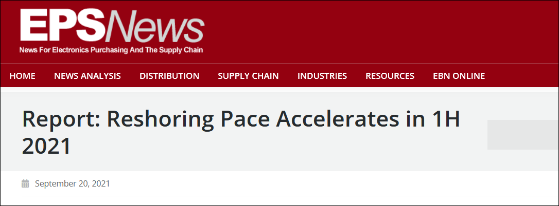EPS News and a Reshoring Initiative study shows that the U.S. reshoring pace accelerated in the first half of 2021.