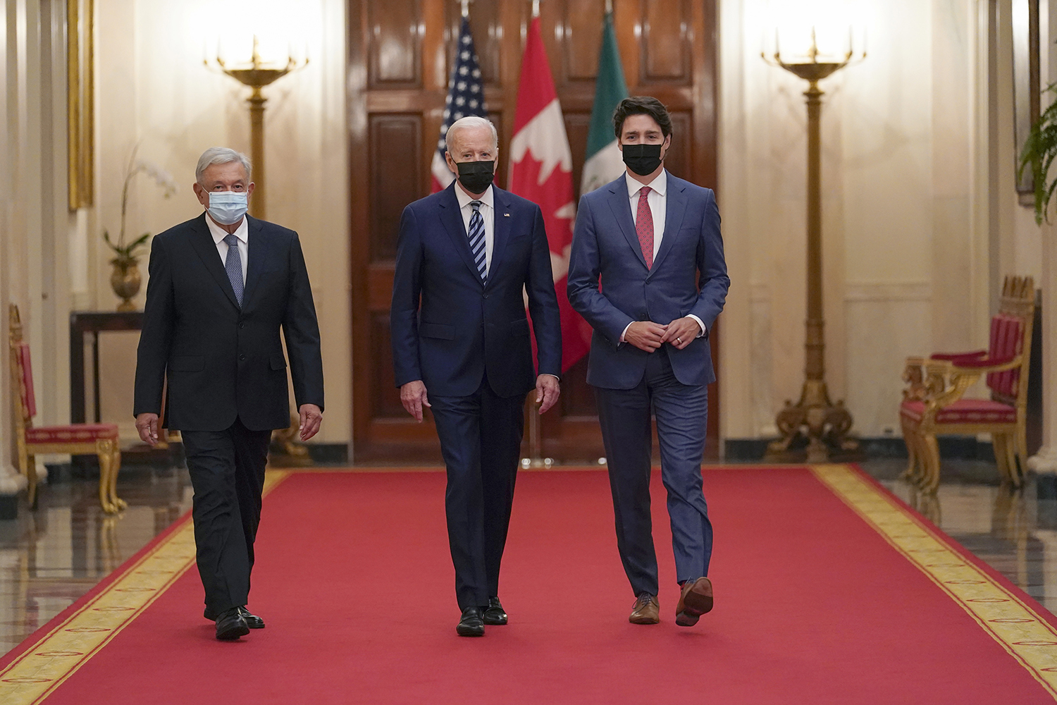 Cover photo: Mexican President Andrés Manuel López Obrador, right, speaks during a meeting with President Joe Biden, left, and Canadian Prime Minister Justin Trudeau, center, in the East Room of the White House in Washington, Thursday, November 18, 2021. AP Photo/Susan Walsh.
