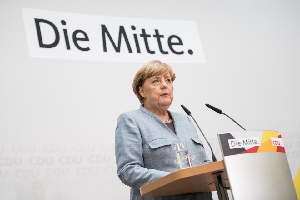 German Chancellor Angela Merkel on Sept. 25, the day after the CDU won 32.9% of the vote in the German federal elections. (Photo by Maja Hitij/Getty Images)