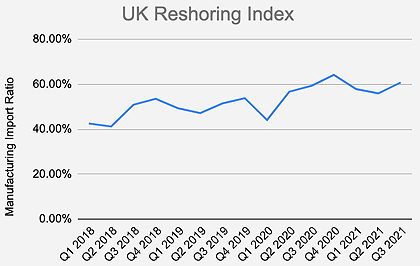 The rise in the index’s manufacturing import ratio (MIR) – indicating a lower level of reshoring – continues a decades-long trend as globalisation and the free movement of goods have led to British companies relocating their production overseas, and consumers have become more reliant on manufacturing goods produced in low-cost countries.