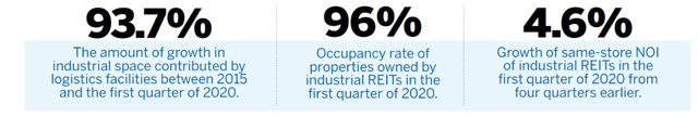 As a segment, industrial REITs are positioned to perform well throughout the COVID-19 pandemic. In the U.S., industrial vacancy rates have stayed below 5%, new inventory has been absorbed quickly, and rent collection rates have remained high.