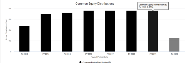 The REIT’s current distribution has been held steady since its last increase in 2015. In the first quarter of 2020, WPT paid out 108% of adjusted cash from operations. Between 2018 and 2019, WPT’s payout ratio averaged 96% of ACFO, leaving little room for near-term distribution increases. The firm will likely allocate additional capital to operational growth and balance sheet strengthening rather than distribution increases.